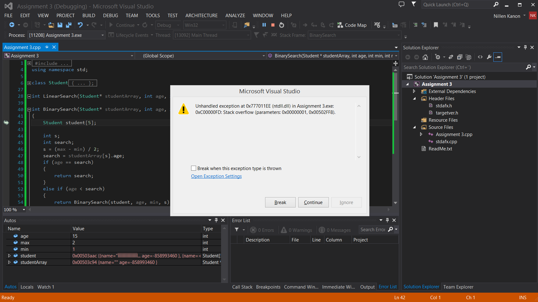 int BinarySearch(Student* studentArray, int age, int min, int max) //Binary Search Function