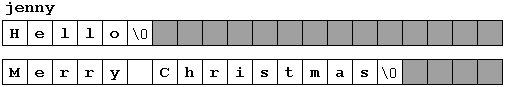 Therefore, in this array, in theory, we can store sequences of characters up to 20 characters long. But we can also store shorter sequences. For example,