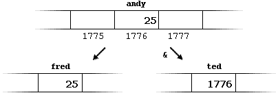 andy (which is 25). This is a standard assignment operation, as we have done so many times before.