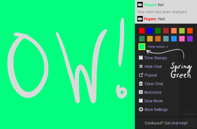 I haven't done any javascript but I was wondering if someone could help me with a quick code for making all the usernames on twitch.tv blue in the chat if they are a certain color. I really hate the spring green color ( #00FF7F ) and would like to replace it with a solid blue ( #00000F )
